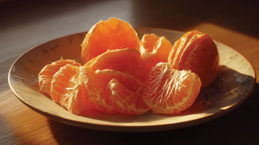Mandarina La mandarina es la fruta estrella de la temporada y un refuerzo natural para tu sistema inmunológico. Es una fuente inagotable de vitamina C, que ayuda a proteger a las células del daño y a mantener tu piel radiante. Su sabor dulce y su aroma cítrico son inconfundibles, y es una fruta muy fácil de transportar para un snack saludable. Su jugo es perfecto para crear bebidas refrescantes y llenas de vitaminas que te ayudarán a mantenerte hidratado.