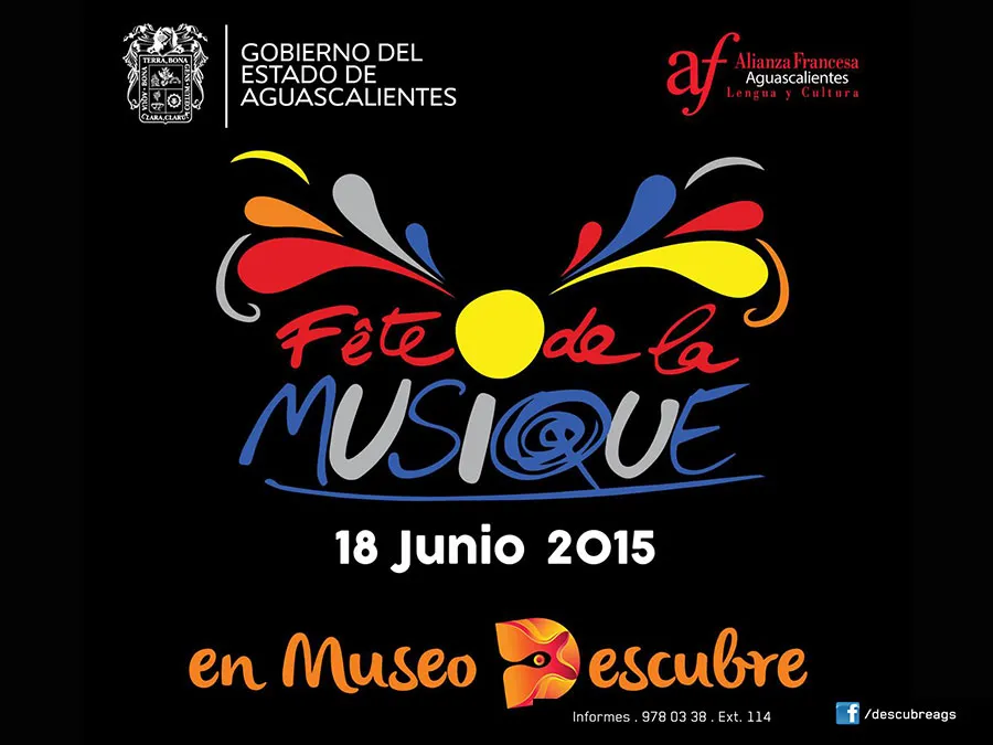 Este año, la Alianza Francesa de Aguascalientes se une a la organización de la Fiesta de la Música el día 18 de junio 2015, en el Museo Descubre a partir de las 19:00 horas y hasta las 23:00.