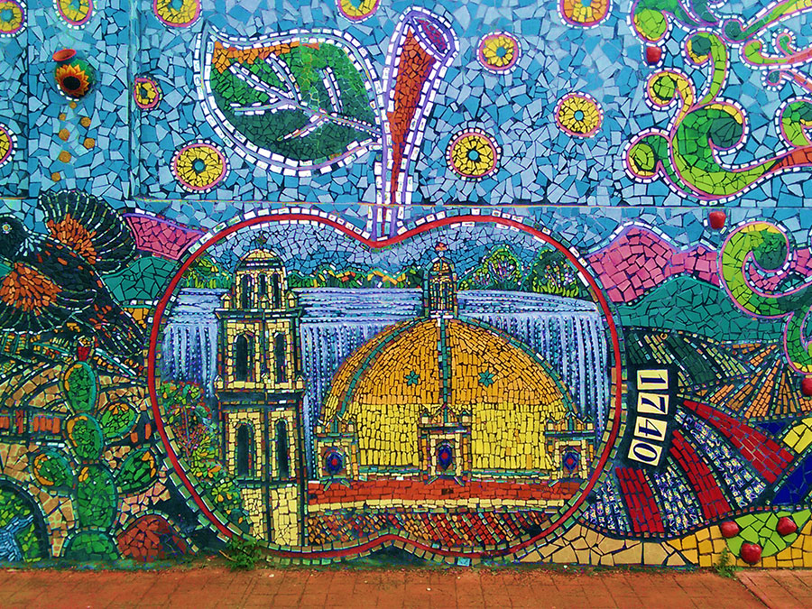 Las paredes exteriores de este recinto son las afortunadas dueñas de este mural. En sus 92 metros de longitud reúne 12 mosaicos de manzanas con motivos representativos de Zacatlán: un gran reloj, las cascadas de Tulimán, el Reloj Floral, entre otros, que te narrarán de manera muy emotiva la historia y riqueza de este Pueblo Mágico.